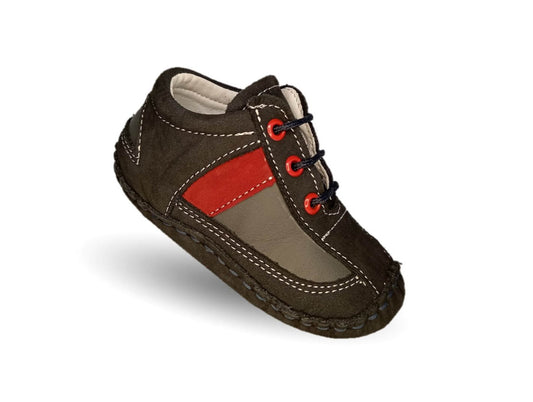 Zapatos para bebé de piel con agujetas Delin Kids 203 Nobuck Marino/Gris/Rojo para niño