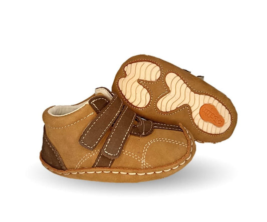 Zapatos para bebé de piel con contactel Delin Kids 288 Nobuck Shedrón/Chocolate para niño