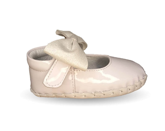 Zapatos para bebé de piel con contactel Delin Kids 78 Charol Blanco/Plata para niña