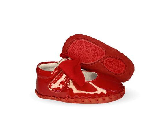 Zapatos para bebé de piel con contactel Delin Kids 78 Charol Rojo/Nobuck Rojo para niña