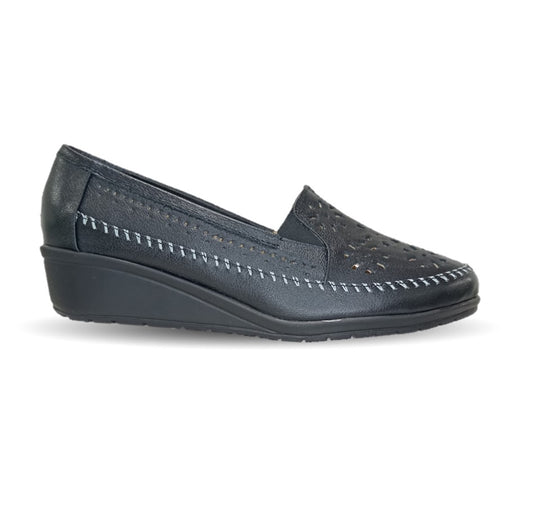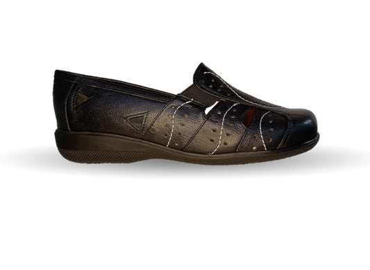Zapato de Confort y Casual abierto de piel de ternera con Shock Point Capricho 21187 Negro para mujer