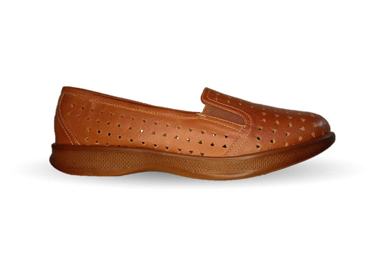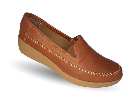 Zapato de Confort y Casual de piel de ternera con suela extra ligera y Shock Point Capricho 23017 Brandy para mujer