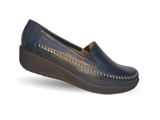 Zapato de Confort y Casual de piel de ternera con Shock Point Capricho 73014 Azul Marino para mujer