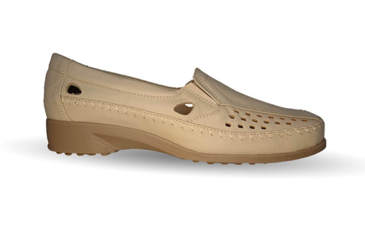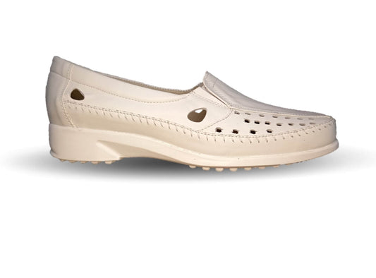 Zapato de Confort y Casual abierto de piel de ternera con Shock Point Capricho 15020 Hueso para mujer