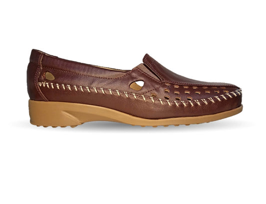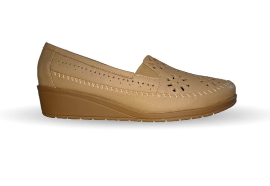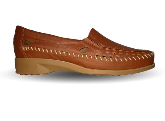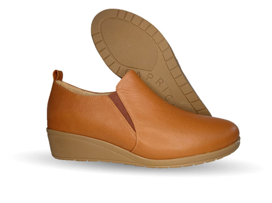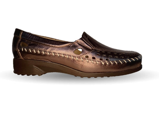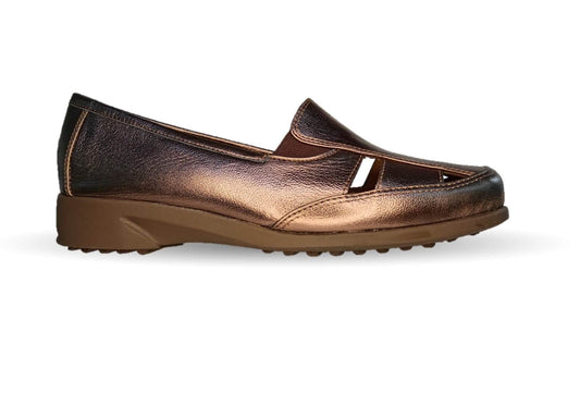Zapato de Confort y Casual abierto de piel de ternera con Shock Point Capricho 15020 Bronce para mujer
