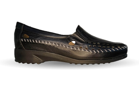 Zapato de Confort y Casual de piel de ternera con Shock Point Capricho 6041 Negro para mujer