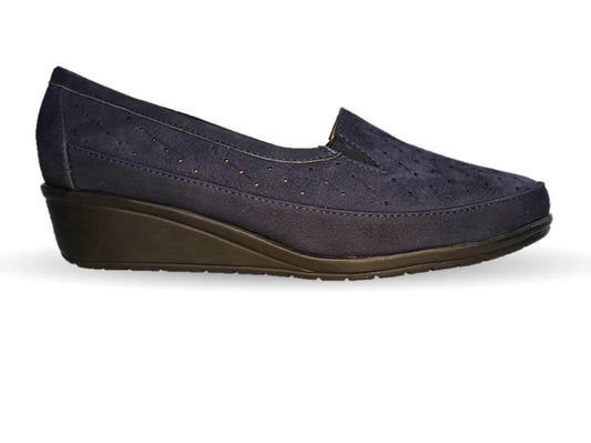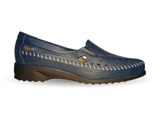 Zapato de Confort y Casual de piel de ternera con Shock Point Capricho 6129 Azul Marino para mujer