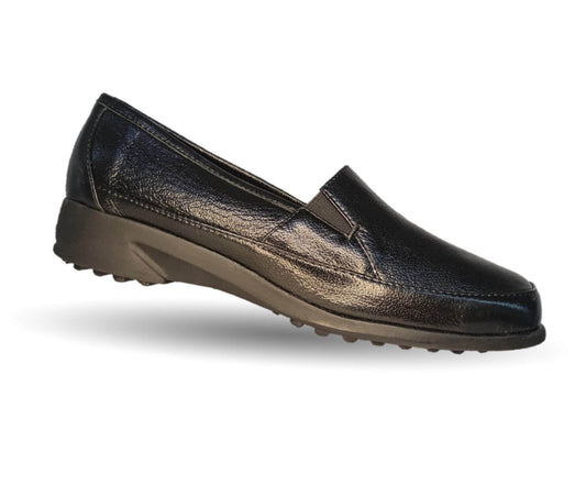Zapato de Confort y Casual de piel de ternera con Shock Point Capricho 15066 Barnicheta Black para mujer