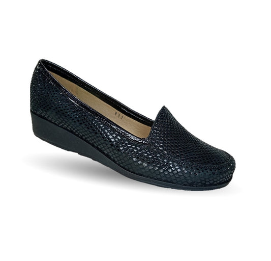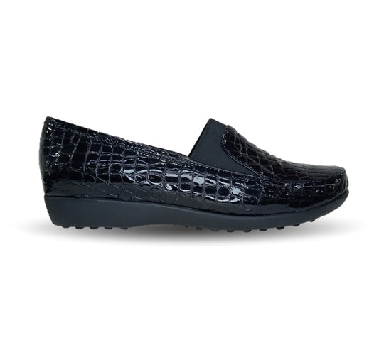 Zapato de Confort y Casual de piel de ternera con Shock Point Capricho 1230 Charol Negro para mujer