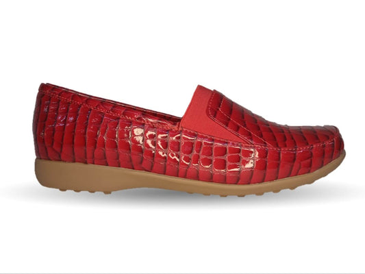 Zapato de Confort y Casual de piel de ternera con Shock Point Capricho 1230 Charol Rojo para mujer