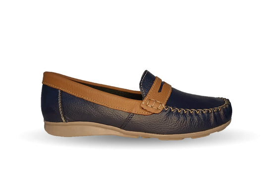 Zapato de Confort y Casual de piel Hannia 370 Marino/Miel para mujer