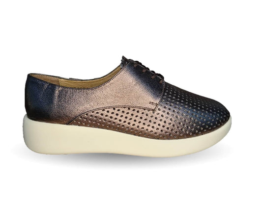 Zapatilla de Confort y Vestir de piel de ternera con Shock Point Capricho 88004 Cristal Inox para mujer