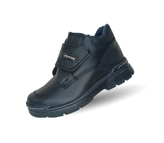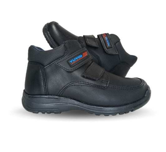 Zapato tipo Bota escolar y casual de piel con contactel Yuyin 23302 Negro para niño
