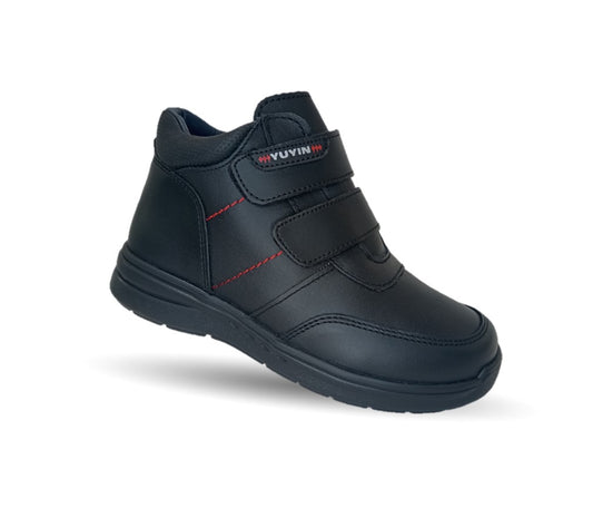 Zapato tipo Bota Escolar y Casual de piel con contactel Yuyin 29150 Negro para niño