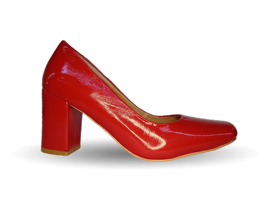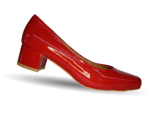 Zapatilla de Vestir y Confort de piel de ternera con tacón bajo Pullman 4001 Charol Rojo para mujer