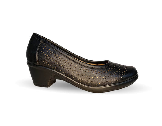 Zapatilla de Vestir y Confort de piel de ternera con tacón bajo Pullman 4001 Negro para mujer