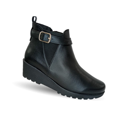 Bota Casual de moda de piel bovino con cuña mediana Pullman 436 Negro para mujer