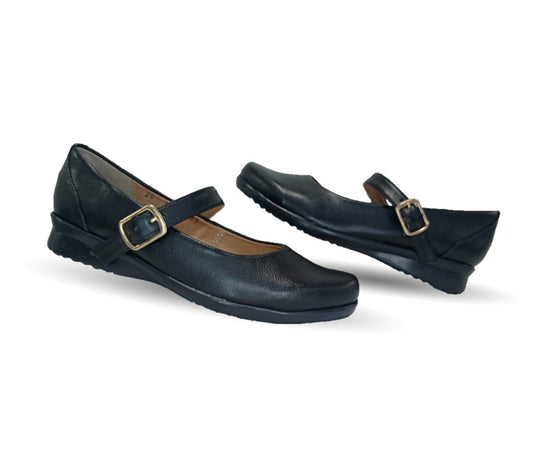 Zapato Escolar y Casual de piel de ternera con hebilla Pullman 8997 Negro para mujer
