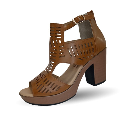 Sandalia Casual de piel de ternera con tacón alto Pullman 6508 Topo para mujer