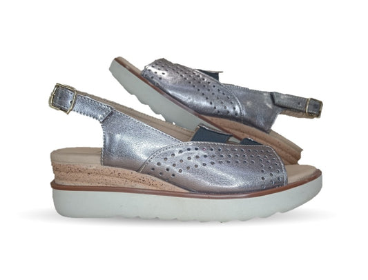 Sandalia de Confort de piel de ternera con cuña mediana Pullman 9505 Inox para mujer