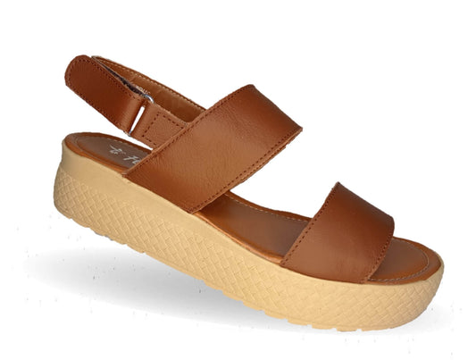 Sandalia de piel con plataforma baja Hannia 1011 Camel para mujer