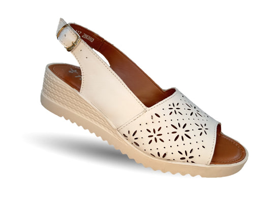 Sandalia de piel con cuña baja Hannia 117 Blanco para mujer