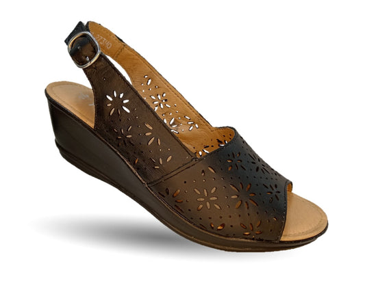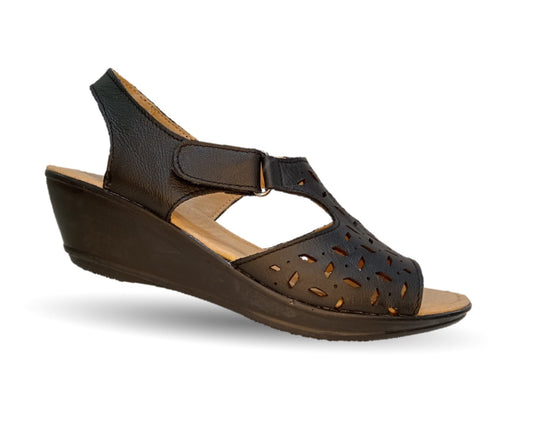 Sandalia de piel con cuña baja 117 Negro para mujer