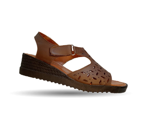Sandalia de piel con cuña baja Hannia 119 Café para mujer