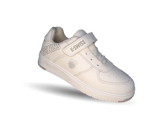 Tenis Urbano y Escolar de piel con agujetas y contactel K Swiss 11 Blanco/Blanco Unisex para niño y niña