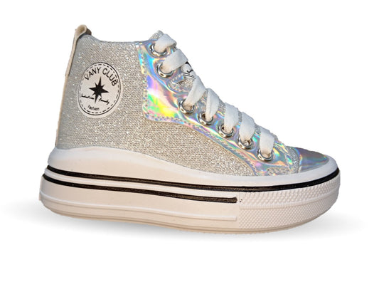 Tenis tipo Bota con agujetas Vany 6010 Plata para niña
