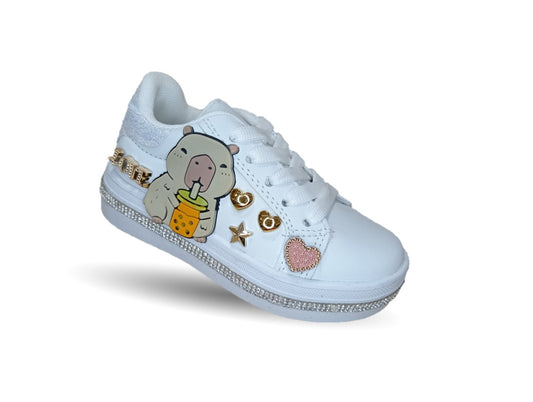 Tenis tipo Bota con ajuste de agujetas Paola Ramirez 17000 Blanco/Multicolor para niña