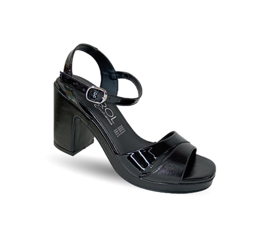 Sandalia con tacón medio D' Carol 5512 Charol Negro/Napa Negro para mujer