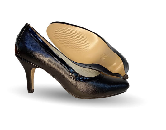 Zapatilla de Vestir de piel de cabra con suela de cuero tacón medio Sasson 913 negro para mujer