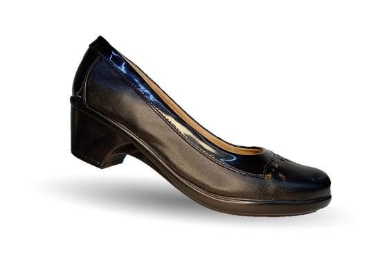 Zapato Casual y de Vestir de piel de ternera con cierre interno con tacón alto suela extra ligera Pullman 1002 Negro para mujer