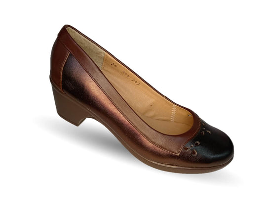 Zapato de Confort y Vestir de piel de ternera con tacón bajo Pullman 243 Antimonio/Moka para mujer