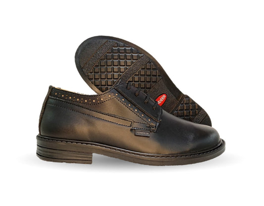 Zapato Escolar y Casual de piel con agujeta Yondeer 5510 Negro para niño