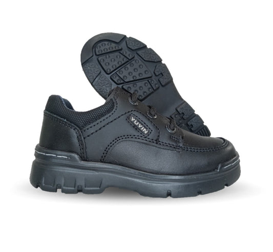 Zapato Escolar y Casual de piel con agujetas Yuyin 23293 Negro para niño