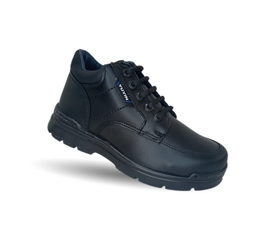 Zapato Escolar tipo Bota de piel con agujetas Fef 4032 Negro para niño