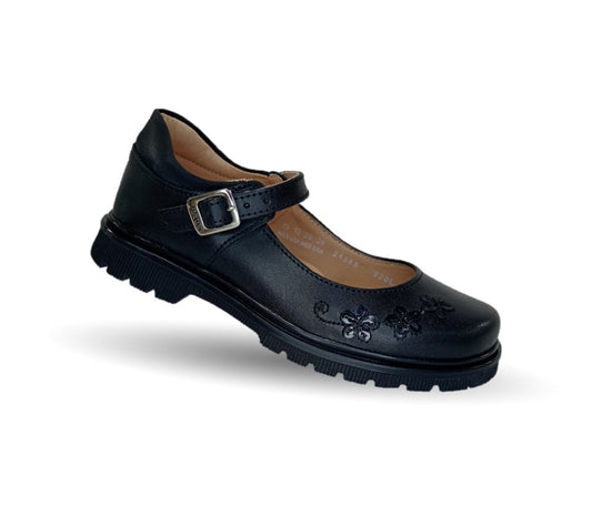 Zapato escolar de piel con hebilla Yuyin 24385 Negro para niña