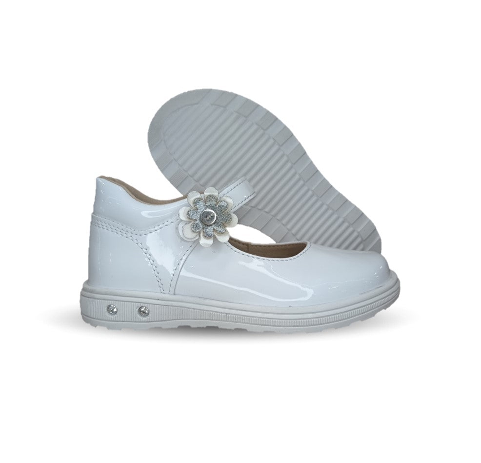 Zapato Casual con contactel Chabelo 138 Charol Blanco para niña