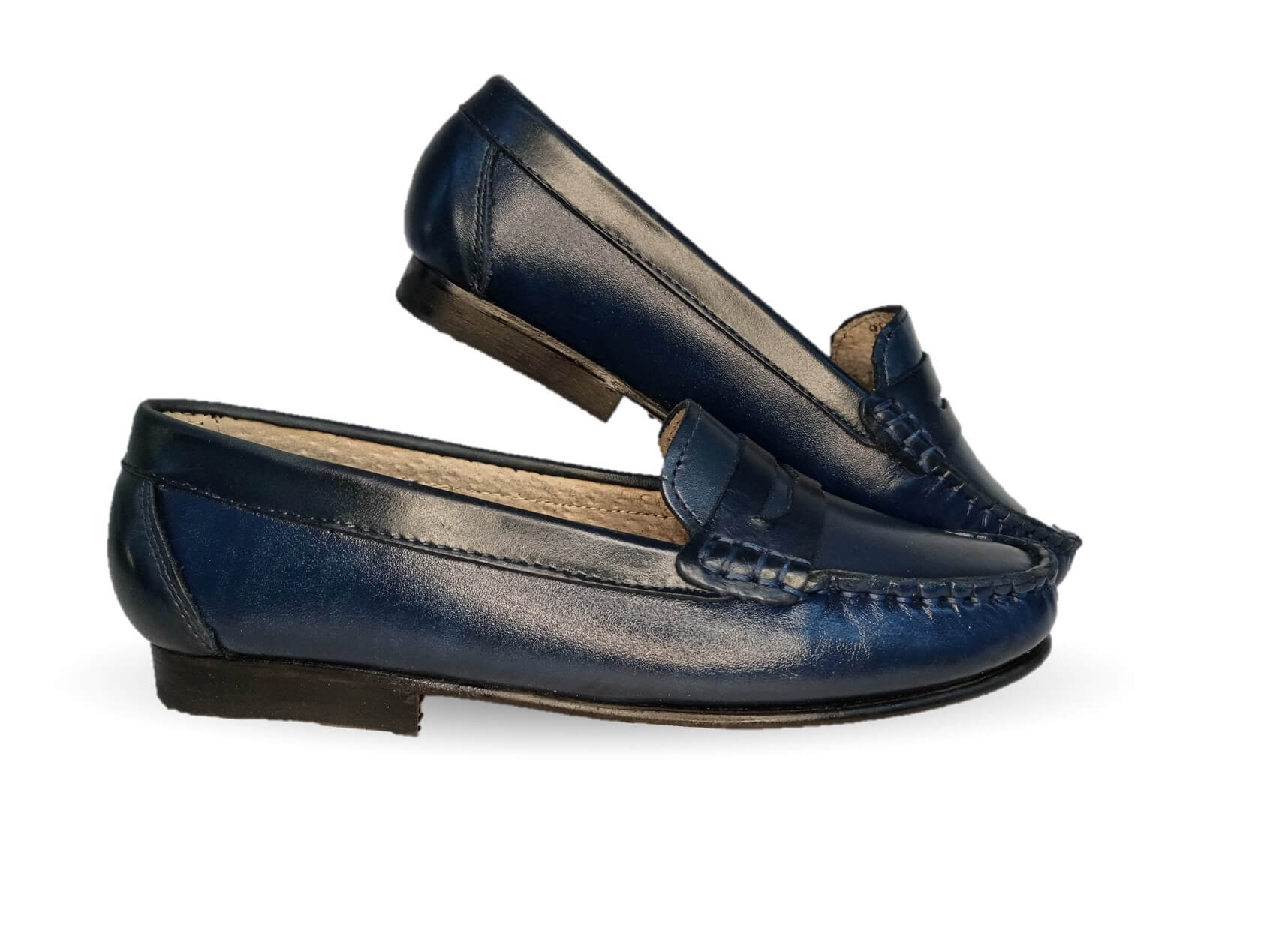 Zapato Casual tipo mocasín de piel con suela de cuero Lady Camo 455 Atanado Marino para mujer