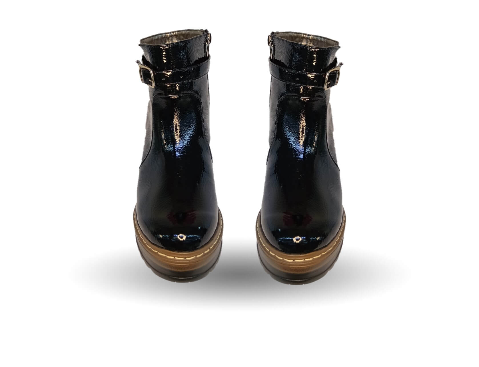 Bota Casual de moda de piel de ternera con tacón alto Pullman 8502 Charol Negro para mujer