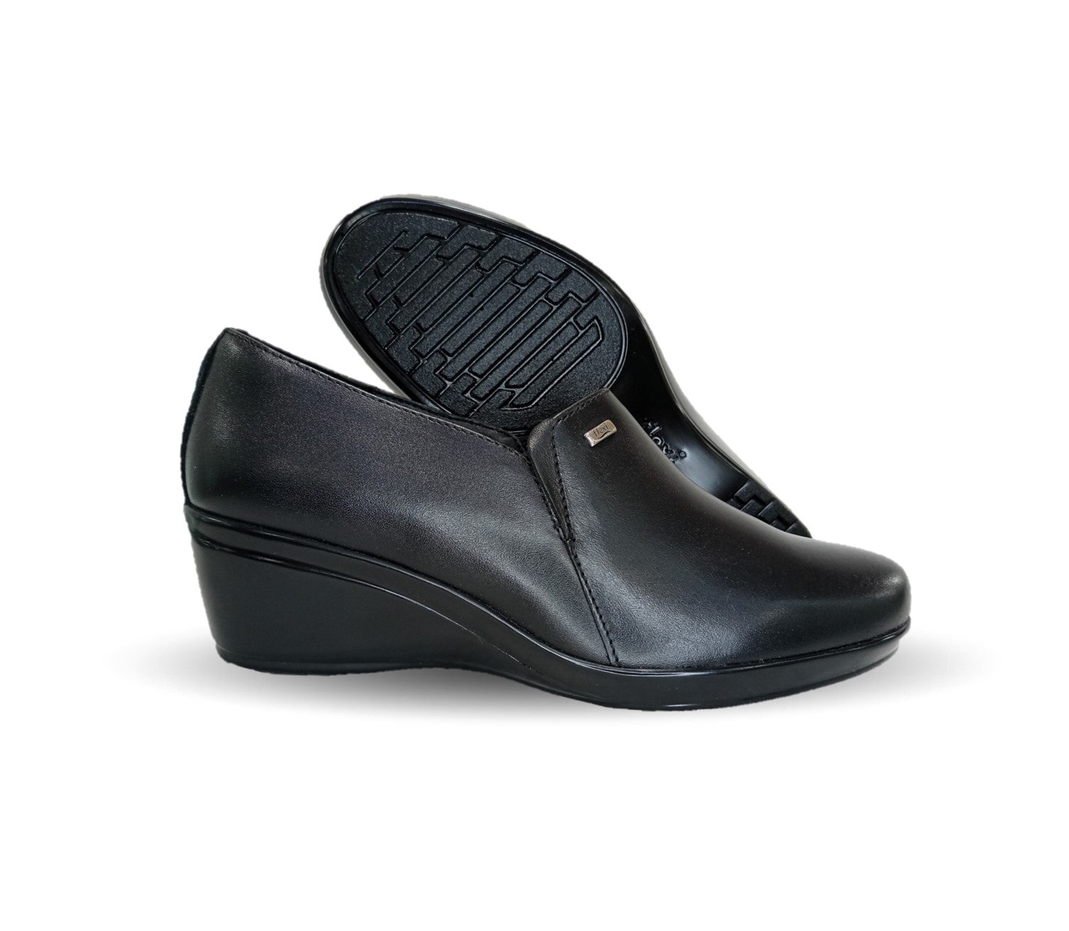 Zapato de Confort y Casual de piel con cuña mediana Flexi 45234 Negro para mujer