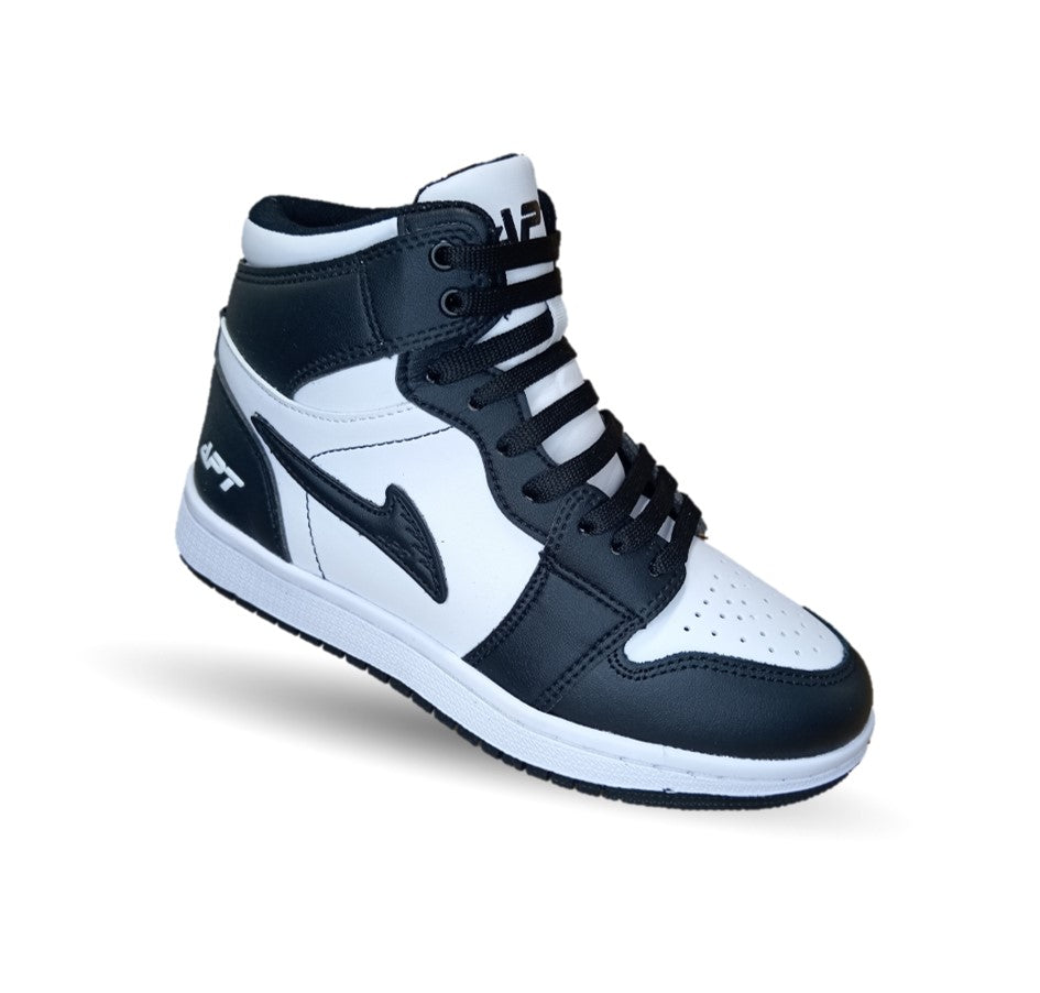 Tenis Urbano tipo Bota de piel con agujetas Apt 409 Negro/Blanco Unisex para niño, niña, dama y junior