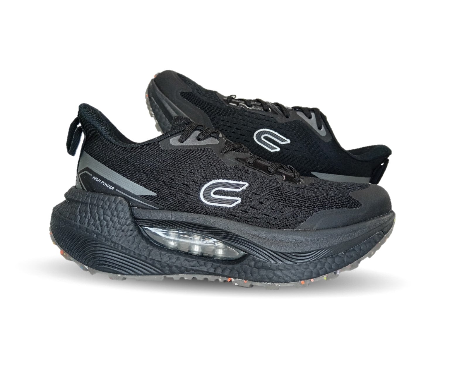 Tenis Deportivo con burbuja de aire y malla transpirable Court 483 Negro/Negro para mujer
