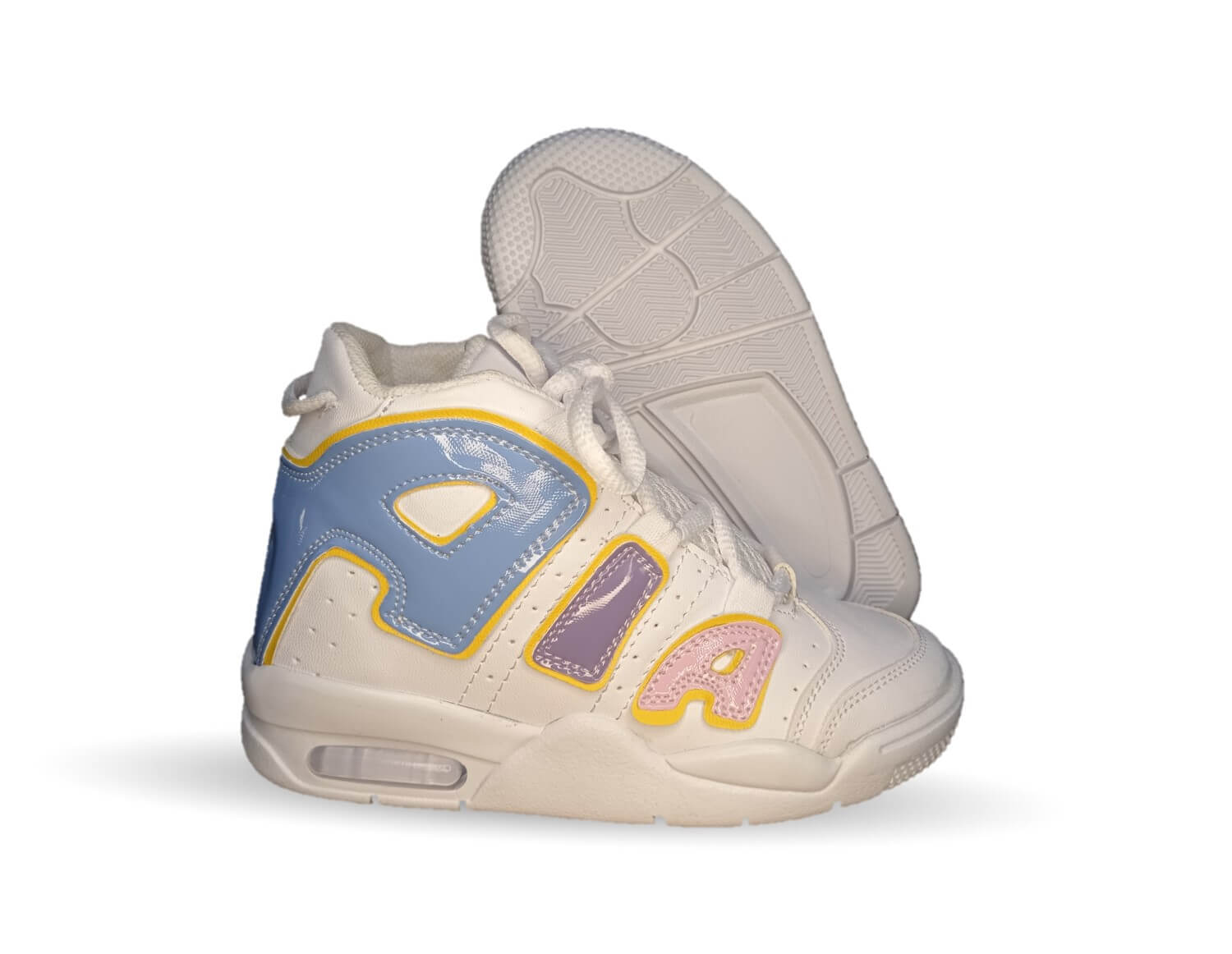 Tenis tipo Bota con ajuste de agujetas Paola Ramirez 17000 Blanco/Multicolor para niña