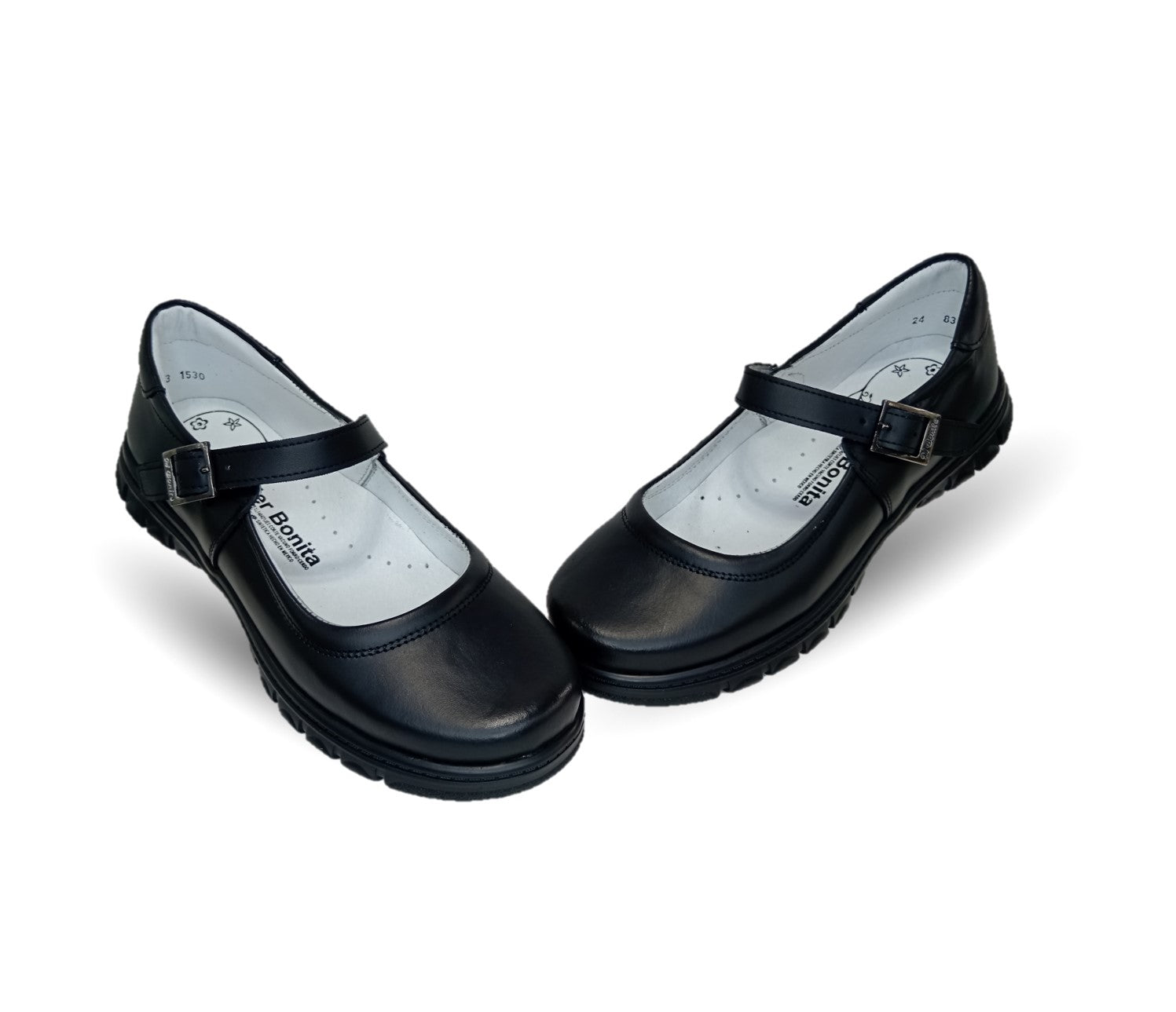 Zapato Escolar y Casual de piel con hebilla Mujer Bonita 1530 Negro para niña y mujer