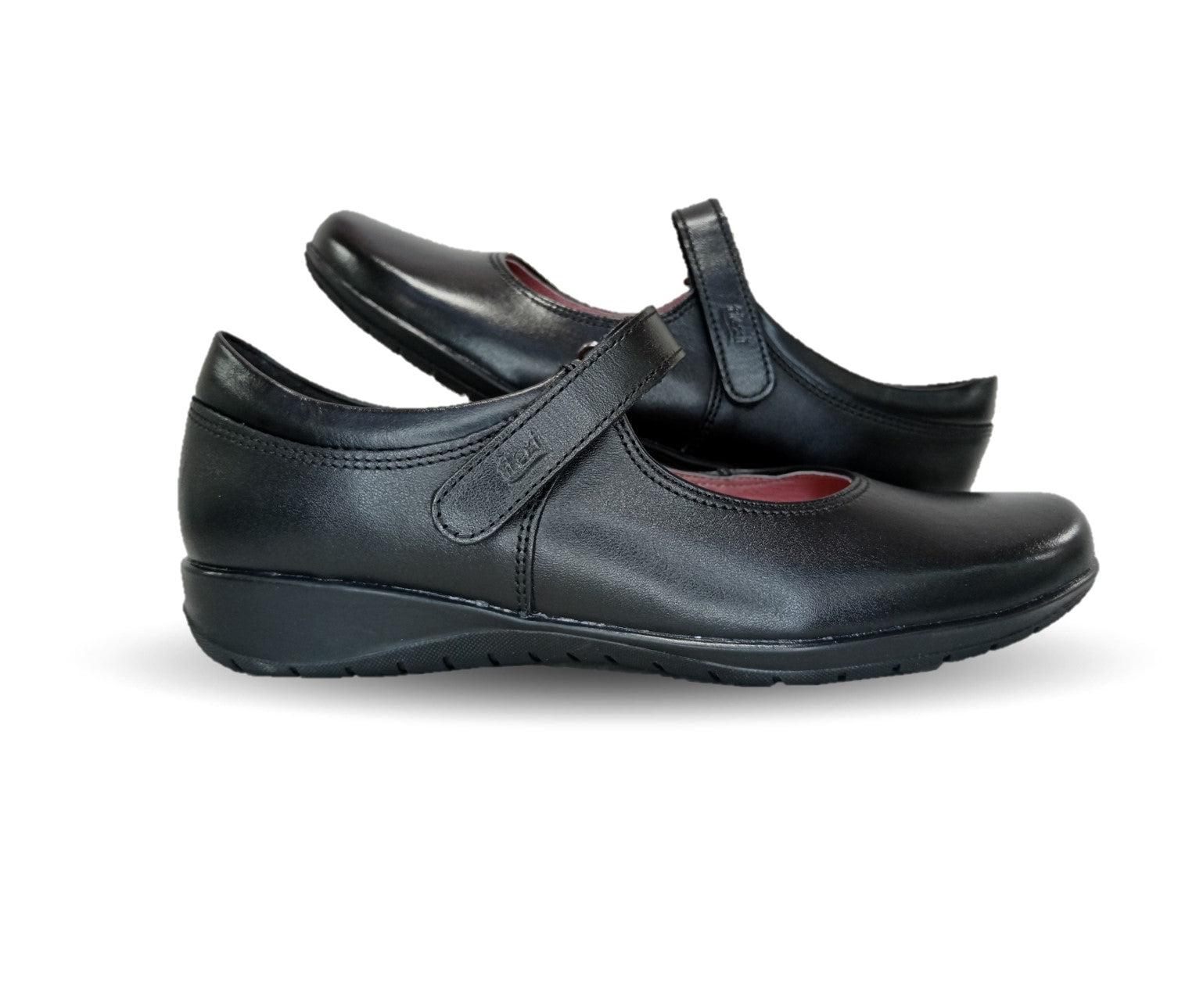 Maryjane de piso en piel de vacuno. Estilo y durabilidad. Pespuntes decorativos visibles a tono con el color del zapato. Ancho ajustable mediante velcro. Forro y Plantilla Recovery Form forrada en piel natural de cerdo. Suela negra.