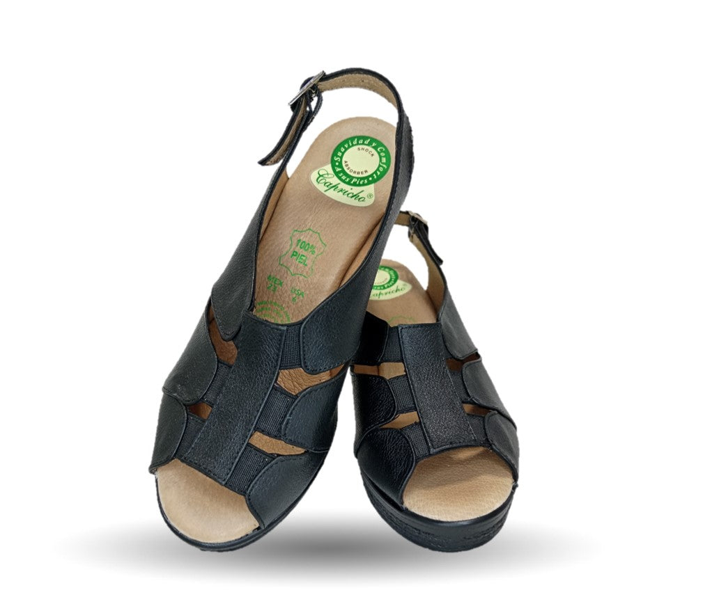 Sandalia de Confort de piel de ternera con Shock Point Capricho 66008 Negro para mujer