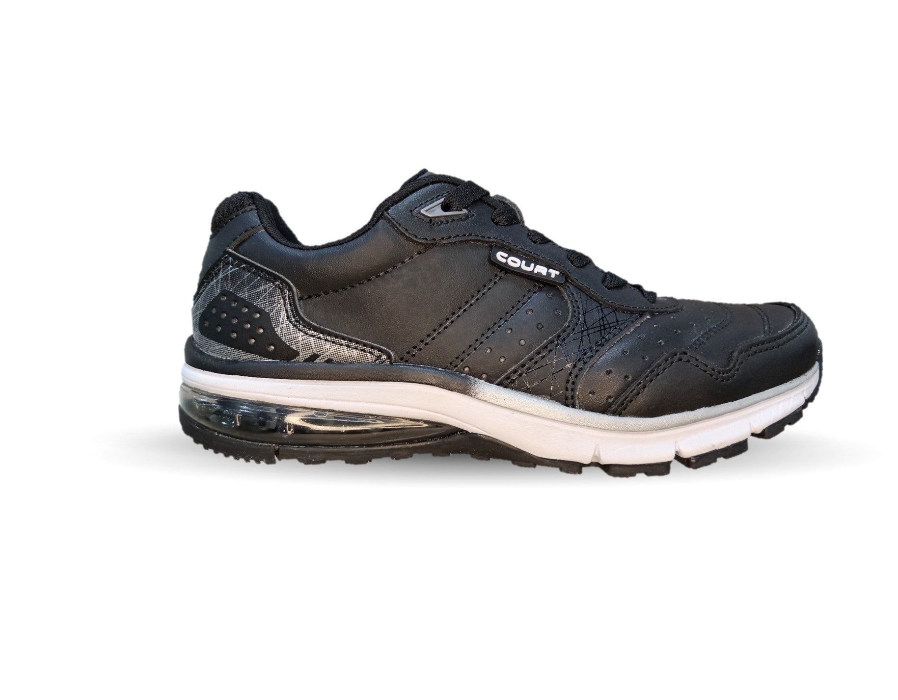 Tenis Deportivo de piel con burbuja de aire Court 7726 Negro/Plata Unisex para mujer y hombre